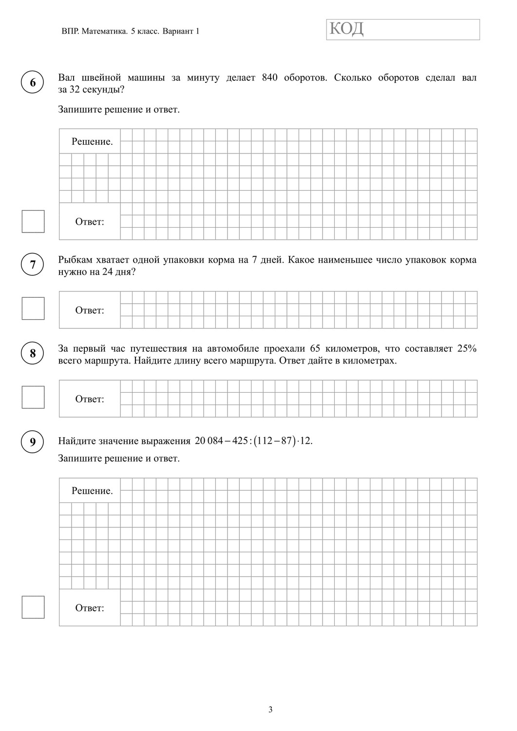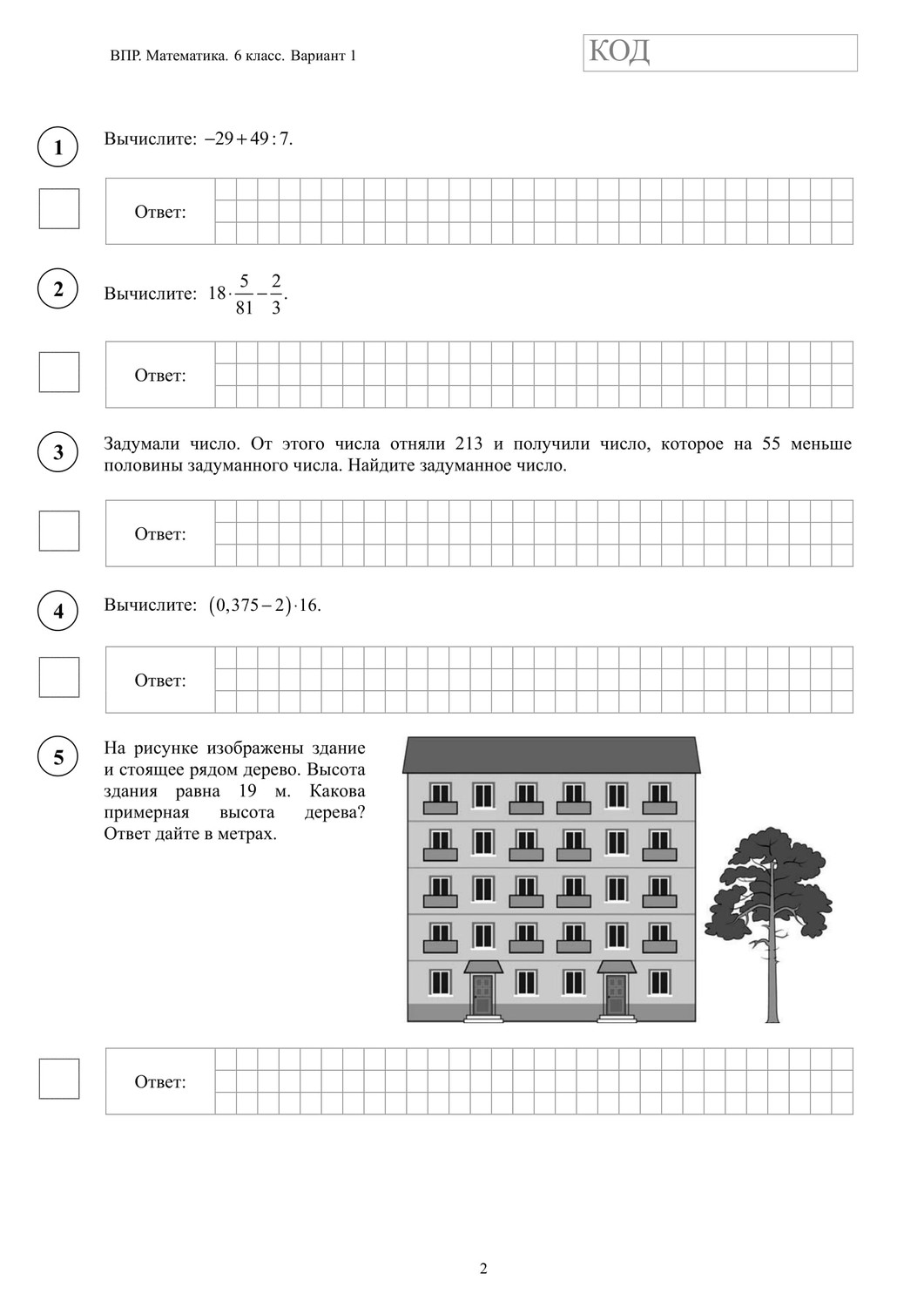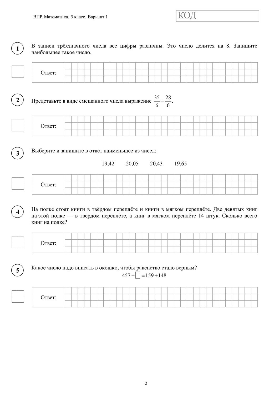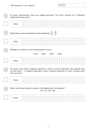 ВПР по математике 5 класс. Вариант с ответами