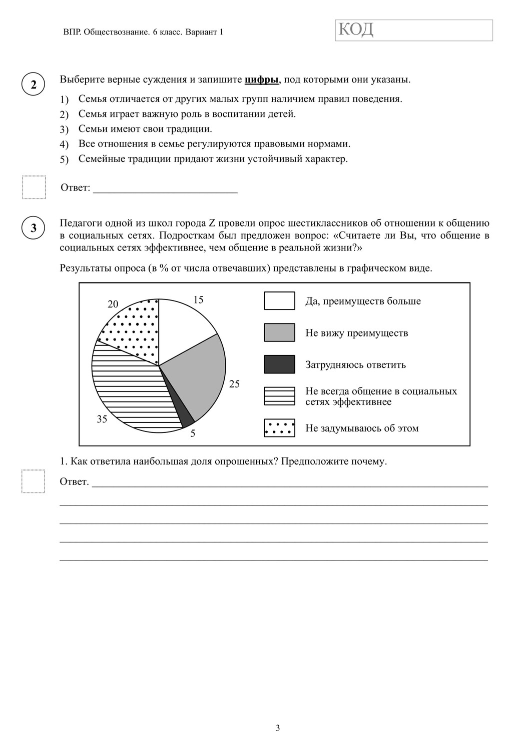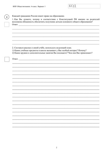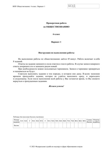 ВПР по обществознанию 6 класс. Вариант с ответами