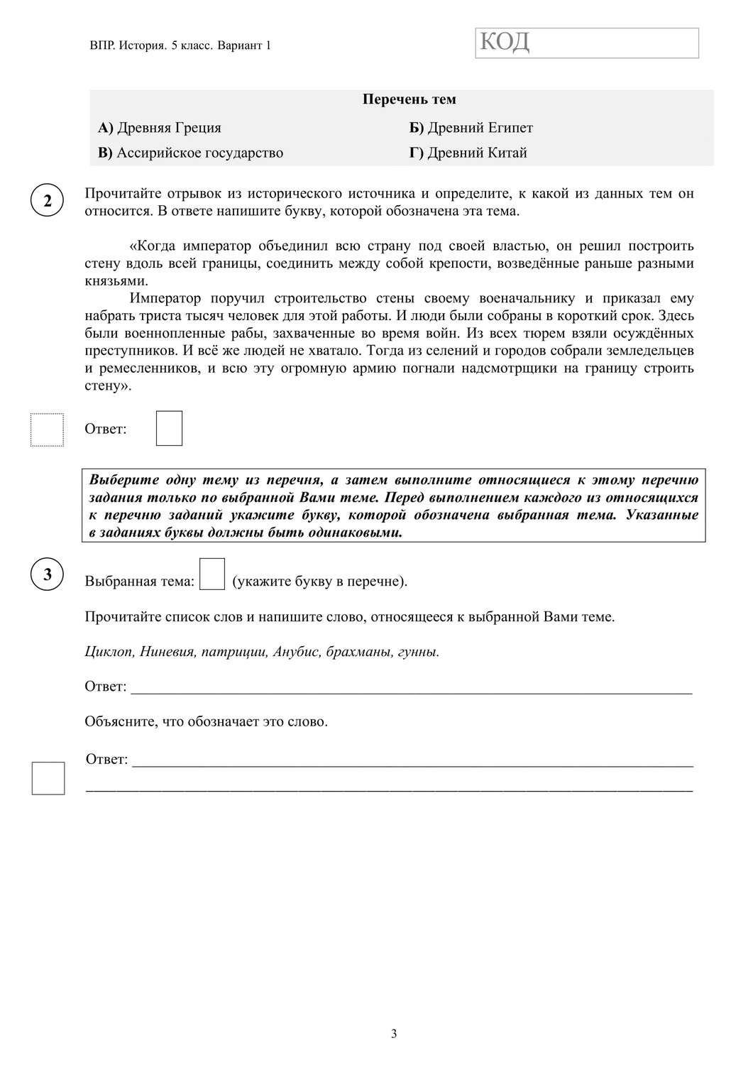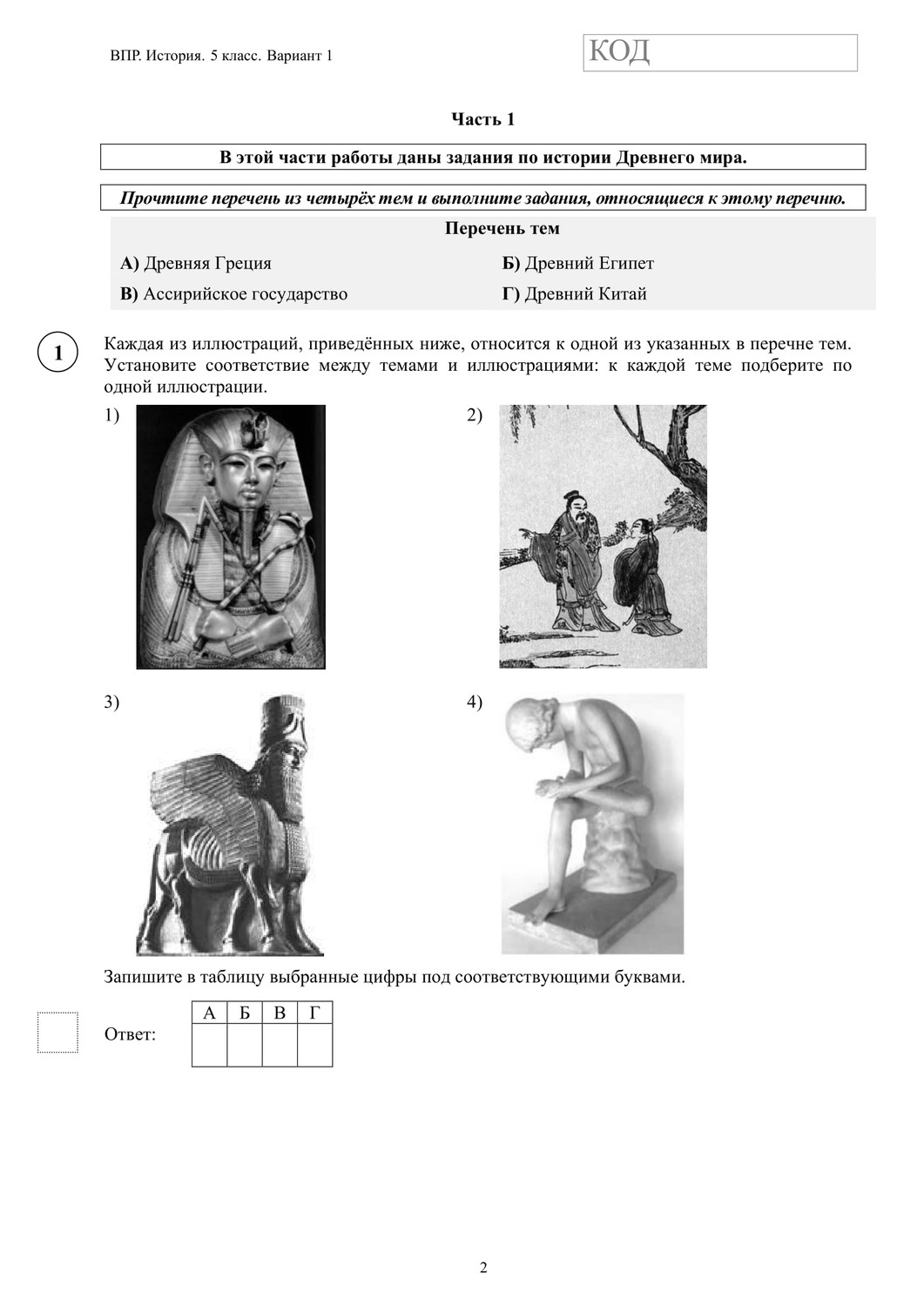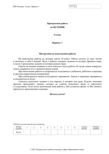 ВПР по истории 5 класс. Вариант с ответами