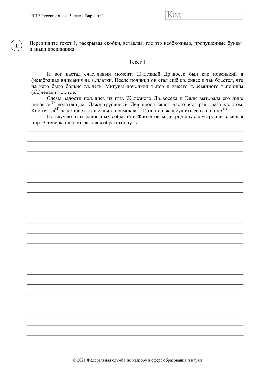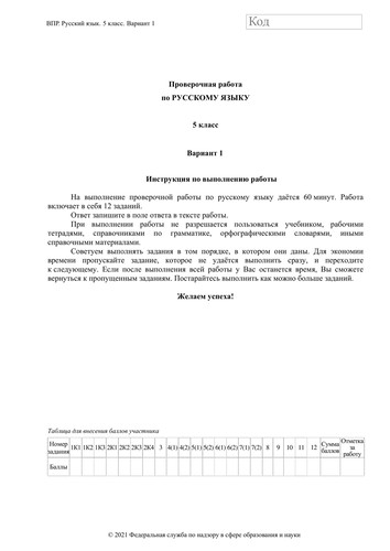 ВПР по русскому языку 5 класс. Вариант с ответами