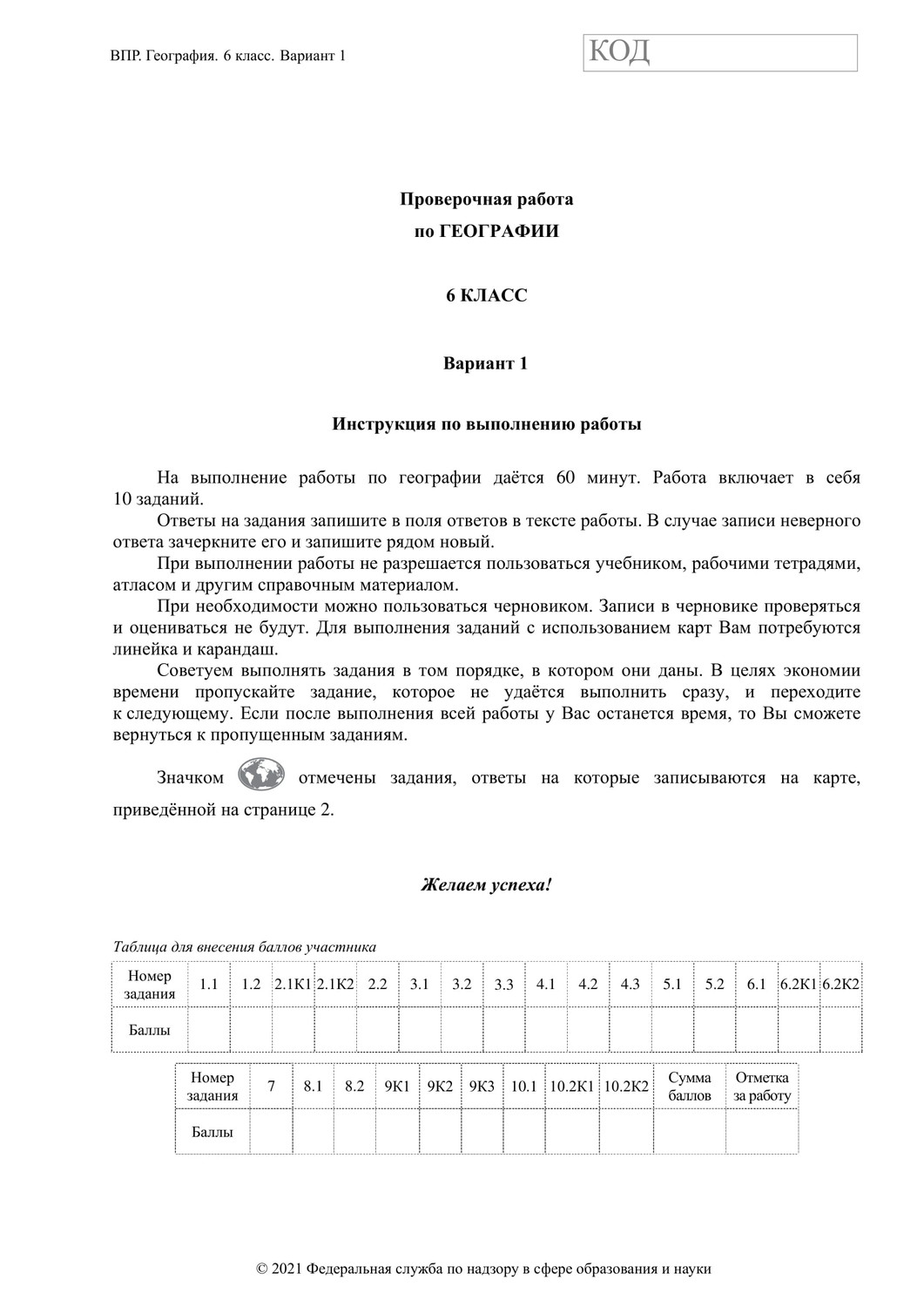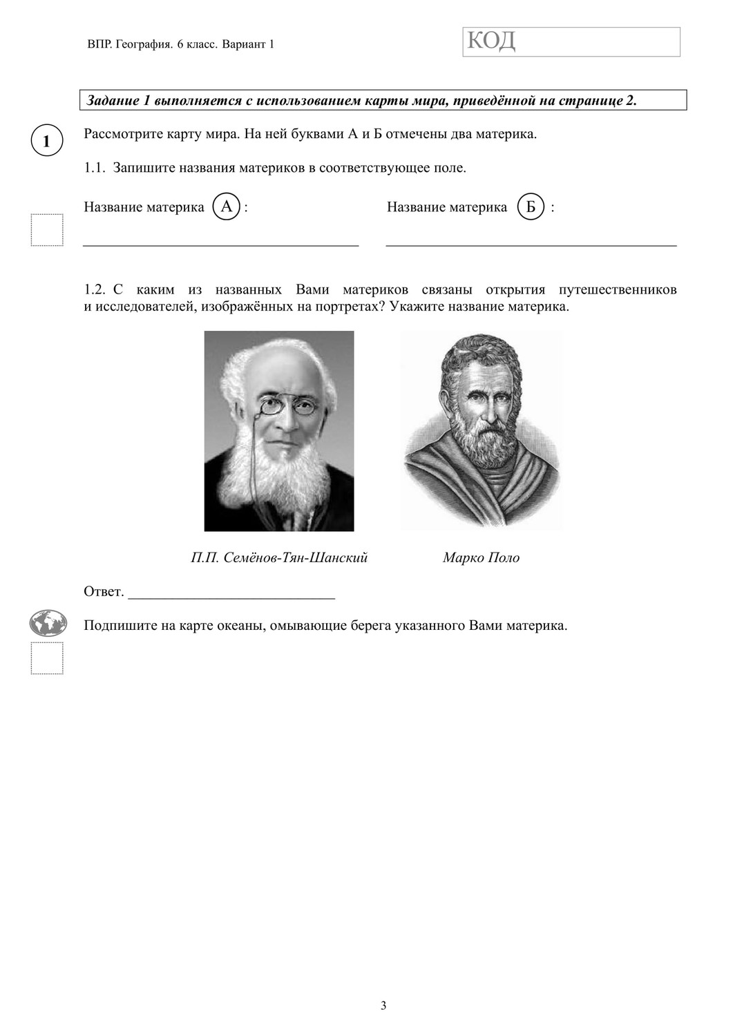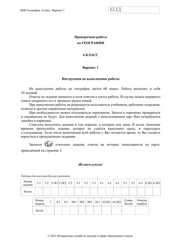 ВПР по географии 6 класс. Вариант с ответами