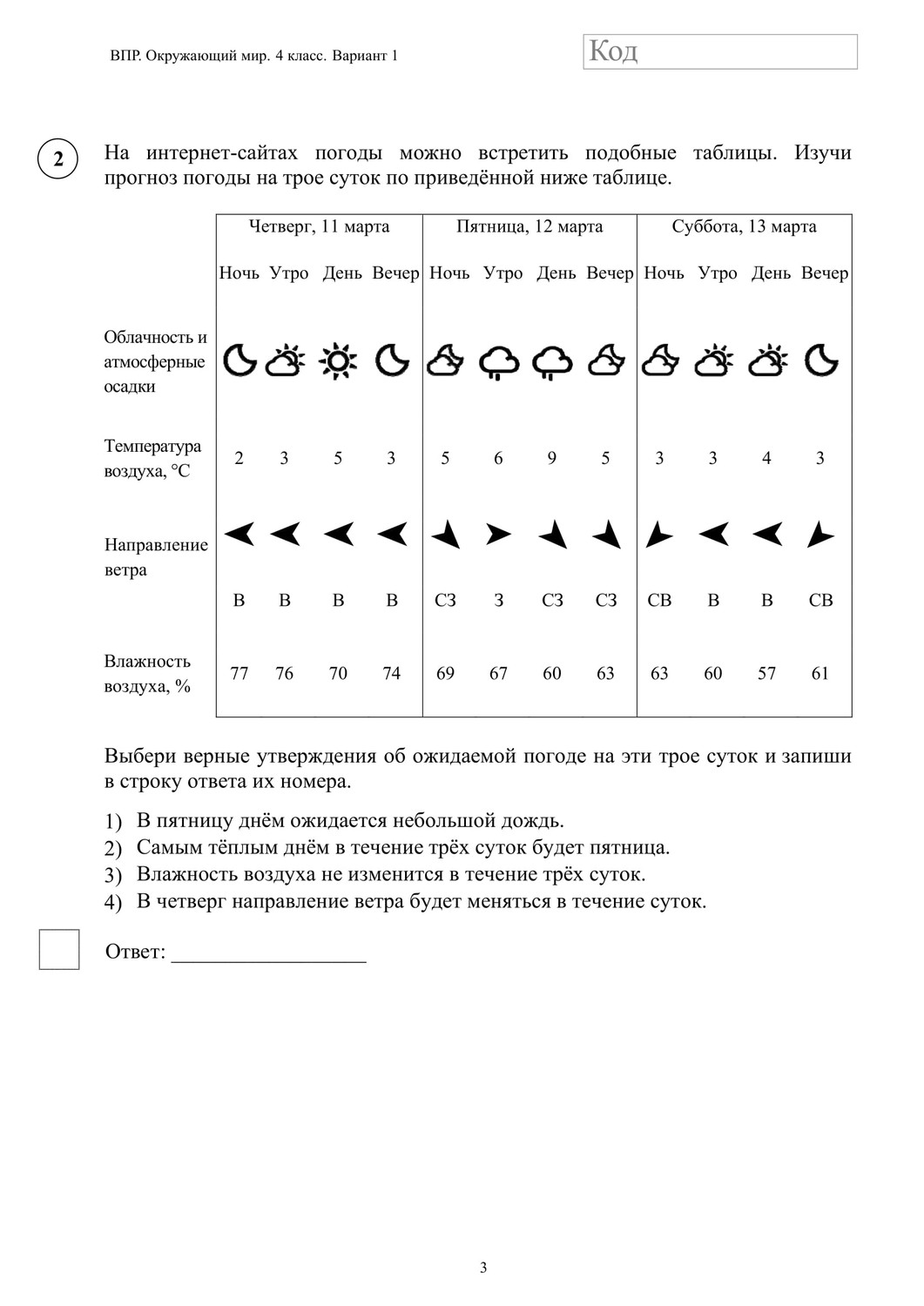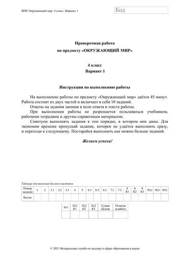ВПР окружающий мир 4 класс. Вариант с ответами