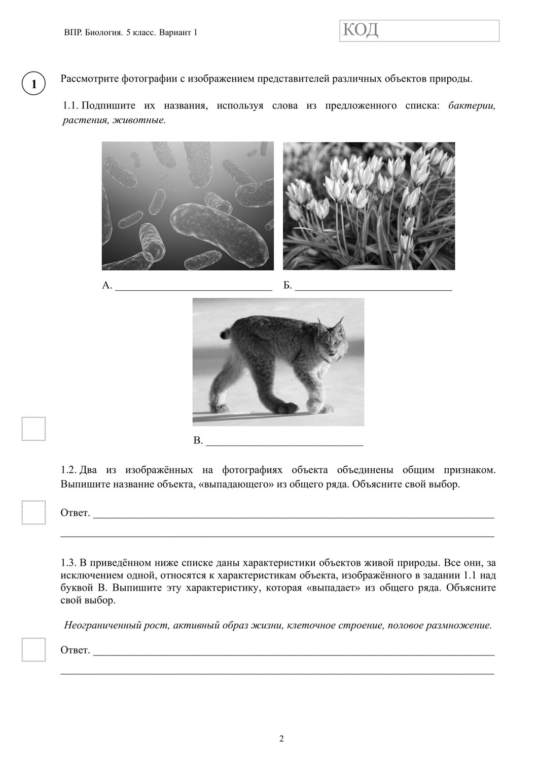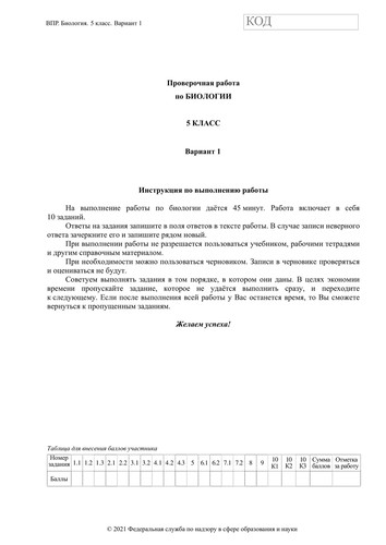 ВПР по биологии 5 класс. Вариант с ответами