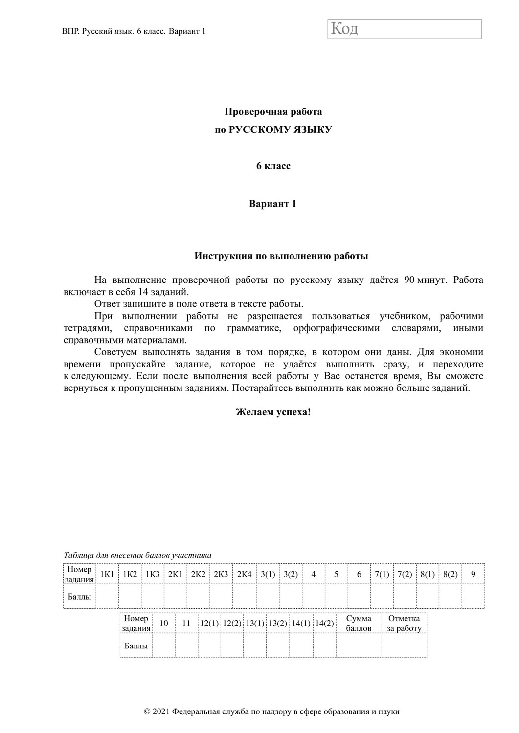 ВПР по русскому языку 6 класс. Вариант с ответами