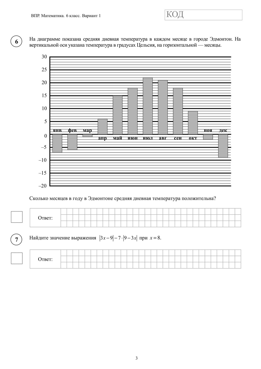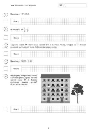 ВПР по математике 6 класс. Вариант с ответами