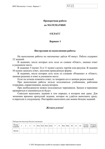 ВПР по математике 4 класс. Вариант с ответами