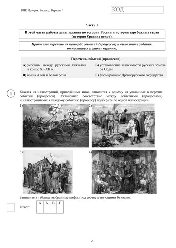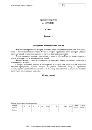 ВПР по истории 6 класс. Вариант с ответами