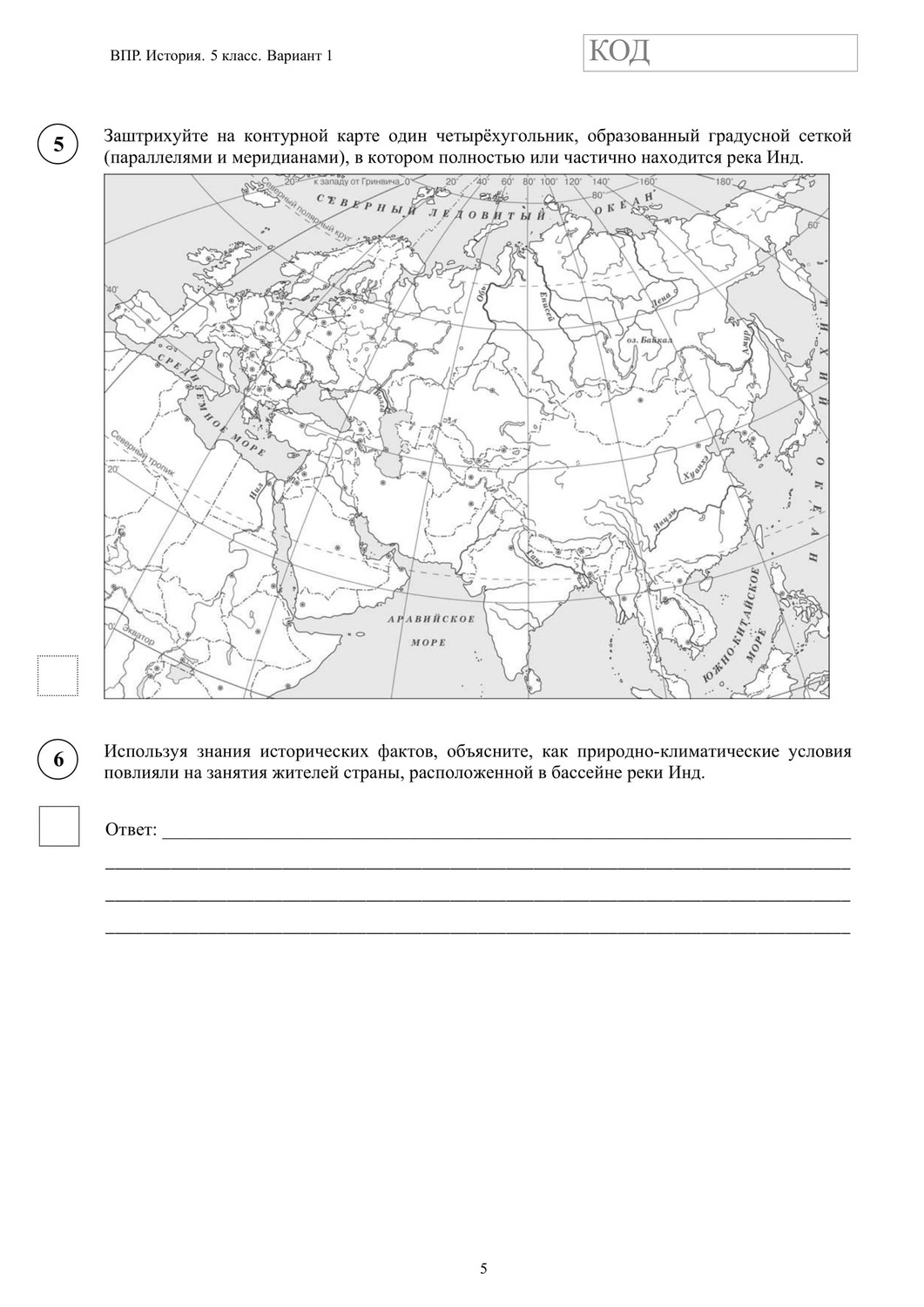 ВПР по истории 5 класс. Вариант с ответами